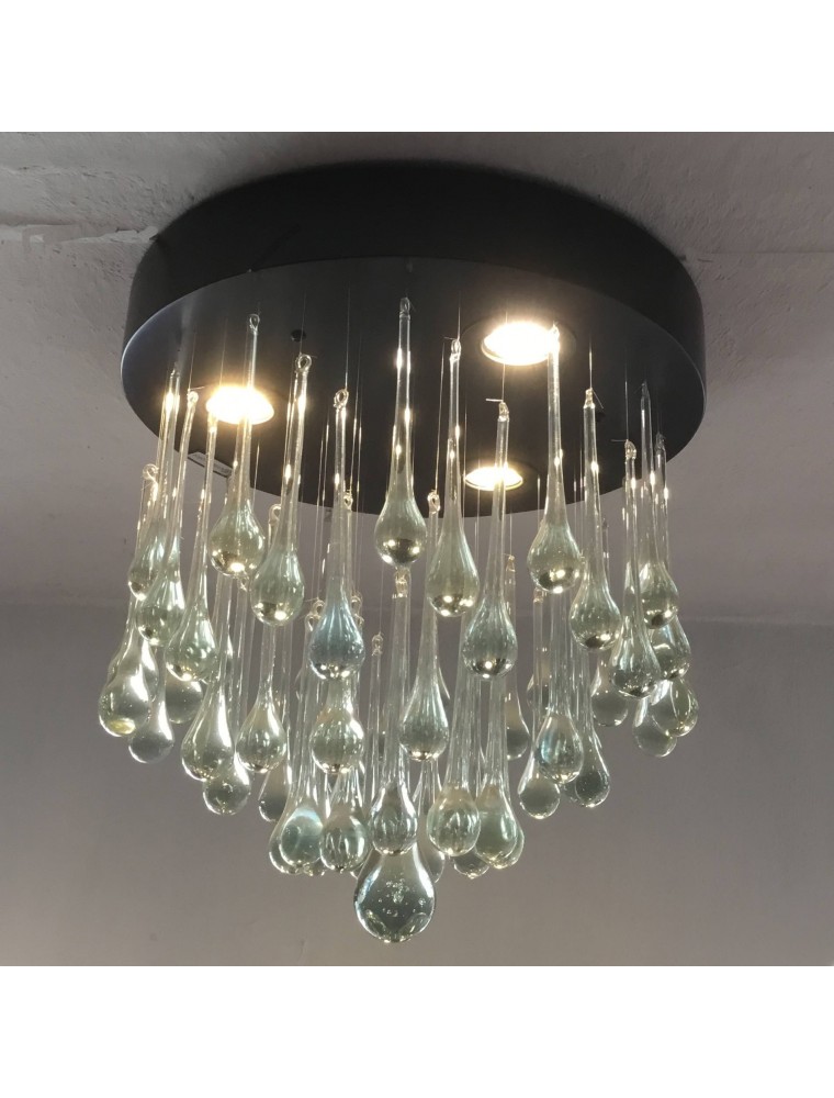 Medidas : 46 cm de Diametro 10 cm de peralte en la base de madera laqueada en color Chocolate 95 cm de largo (caida de gotas) TRES leds de 2 w.