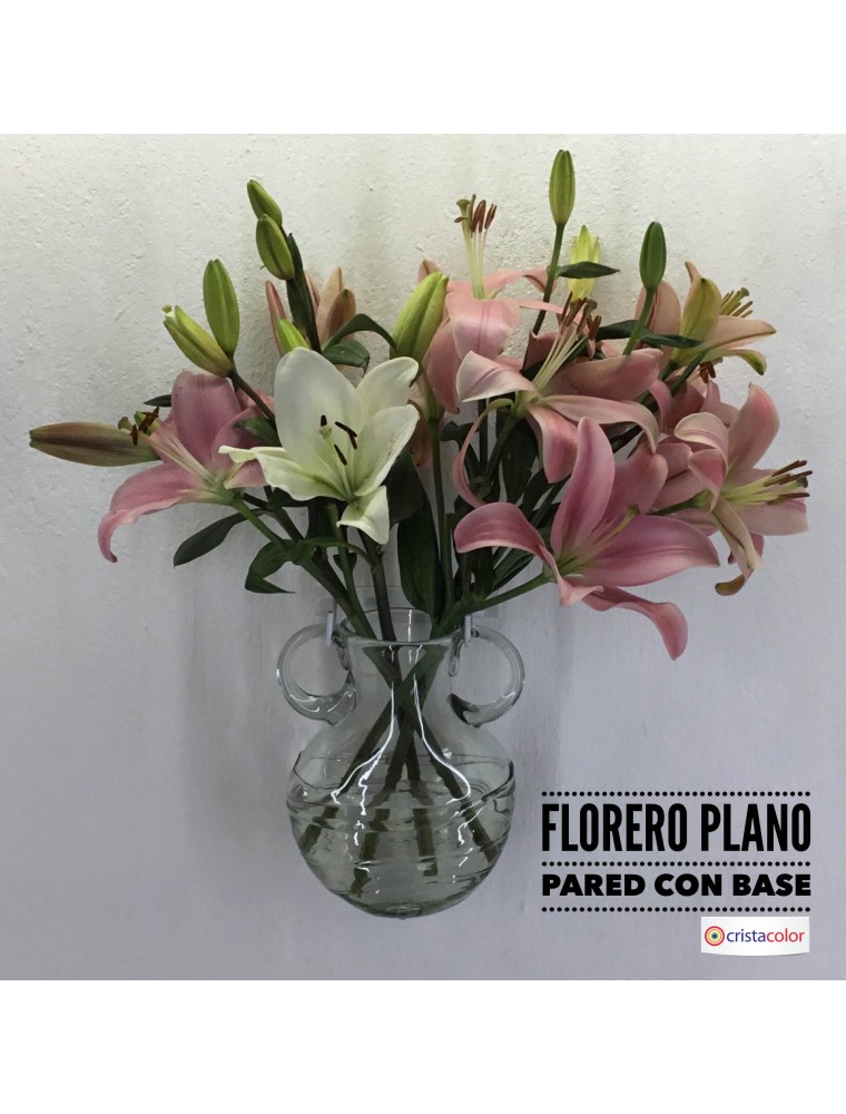 Florero Plano Pared Cristal con Base